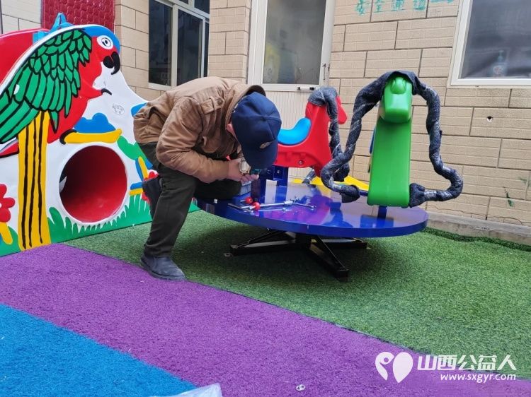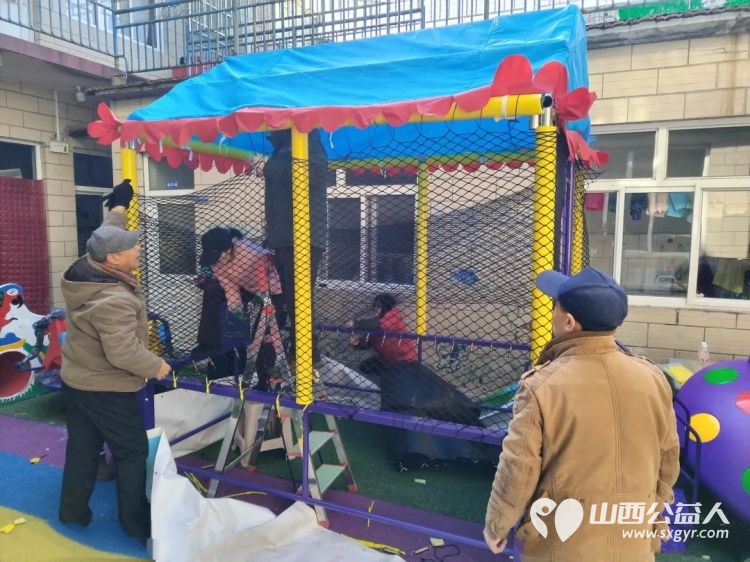 长治市义工协会志愿者免费为启明星智障儿童托养中心安装蹦蹦床旋转木马活动总结