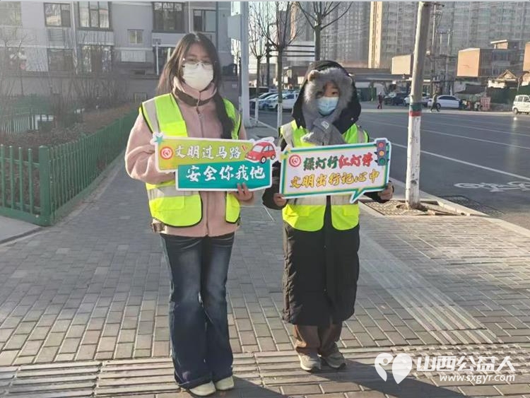 与此同时,城市各个人行横道路口,志愿队伍也在坚守。文水县爱心帮扶志愿者协会团支部大学生志愿者们身着志愿马甲、手持引导牌,化身文明交通劝导员,在寒风中守护市民出行安全。