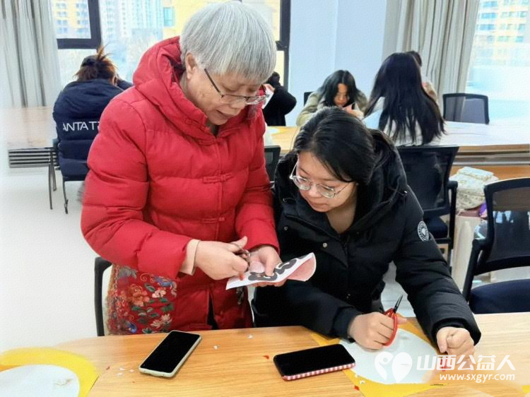 共青团·伙伴计划社区示范项目 运城市爱心驿站社会工作服务中心开展剪纸迎福亲子同乐手工兴趣活动带领青少年及家长学习剪纸技法