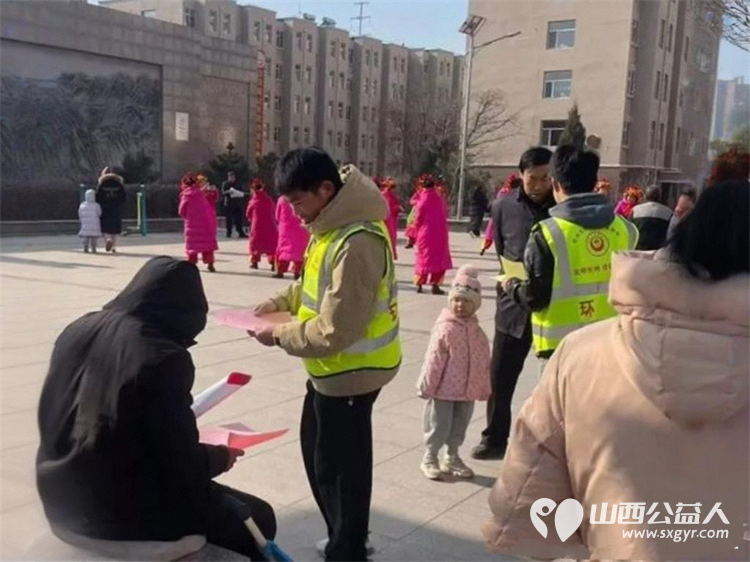 青春护蓝焰 文明过新春----忻州市环保志愿者协会组织青年志愿者队伍走进怡居苑社区开展烟花爆竹禁限燃放宣传活动