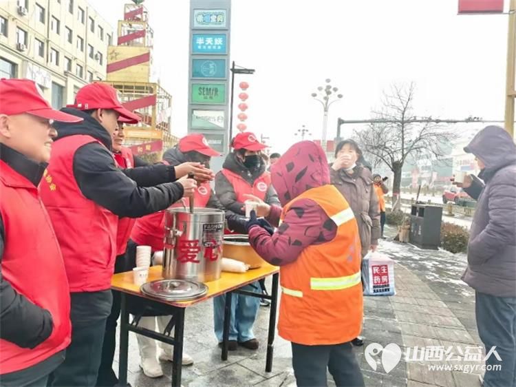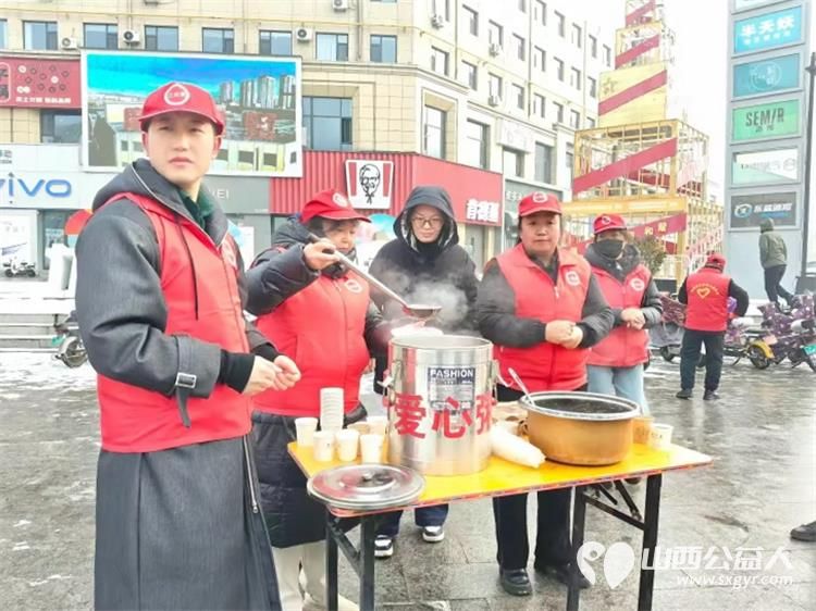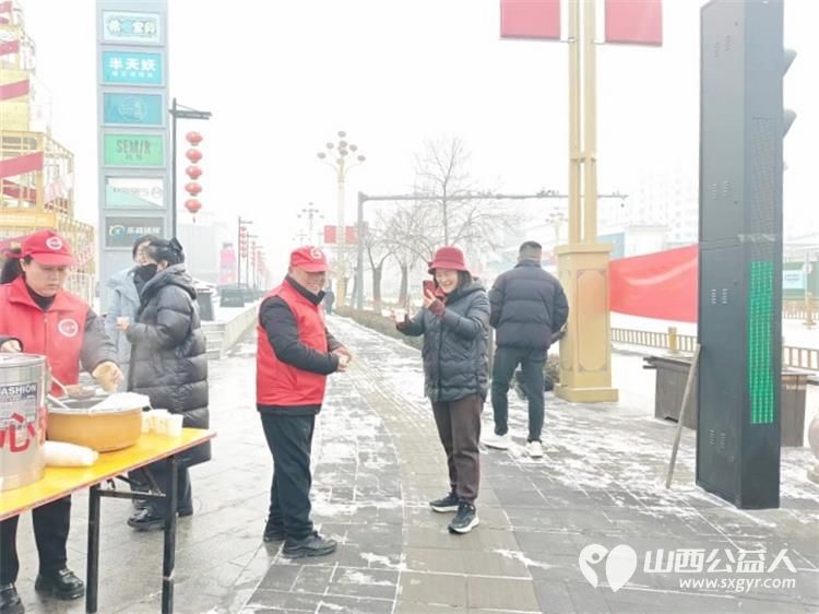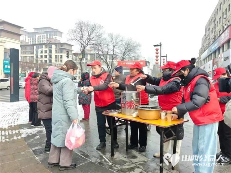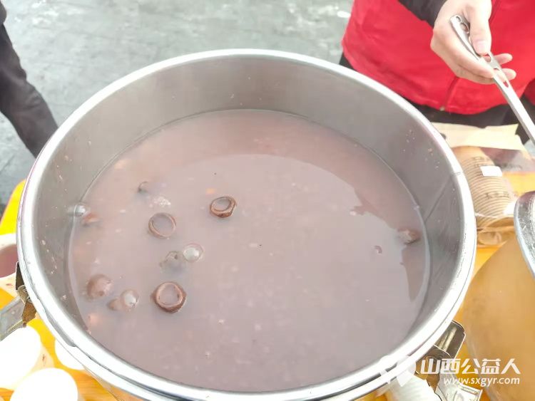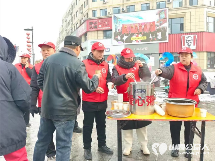 冬日里的温暖接力----长治市潞城区正能量公益协会志愿者用行动点亮城市公益在腊八节熬制了数百碗腊八粥为交警环卫工人外卖小哥及路人们送上