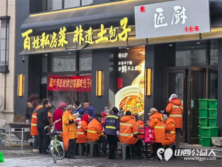 腊八情浓暖心粥 长治市小雨点公益志愿者协会腊八节为大家祈福赠送爱心粥爱心包子为一线工人和户外工作者广大民众送去了一份浓浓的爱意