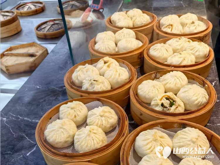 包子粥的塔配是红花绿叶般的最佳组合。特色土包子是爱心早餐推出的第二个精品内容。包子馅料由优质大葱,香菇,猪后腿肉等主要材料组成。色香味美,两个小时的时间,共送岀近二百个包子,服务达百人以上。