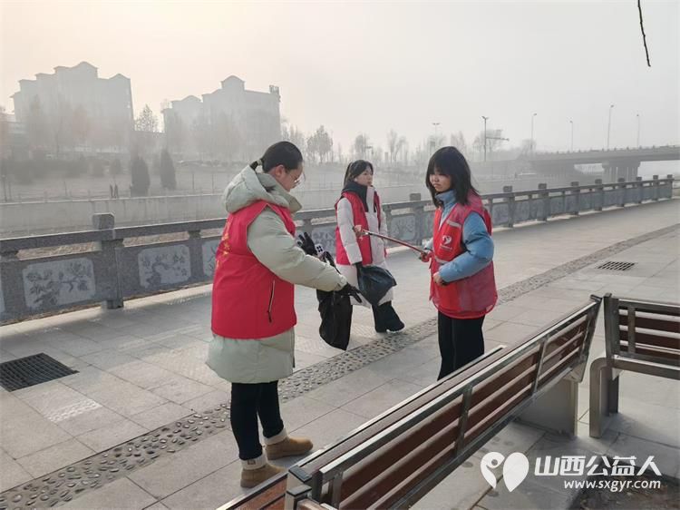 文水县爱心帮扶志愿者协会组织志愿者1月31日继续赴文峪河畔拾捡白色垃圾赴文水街头守十字路口传文明理念引导市民规范出行