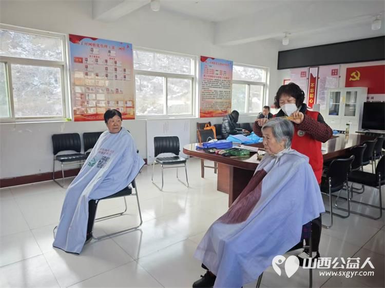 志愿者们来到了龙凤镇峪子村村委,现场理发师们手指动作流畅而自如,每一个细节都被处理的无可挑剔,让老人们焕然一新;