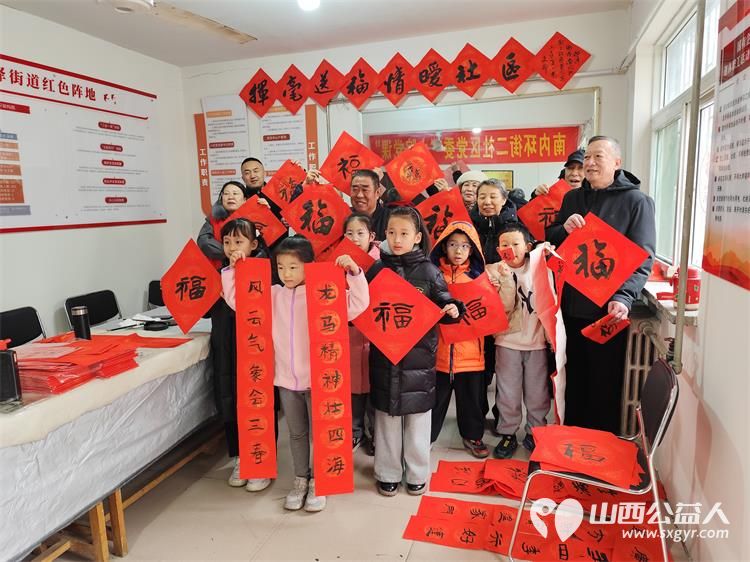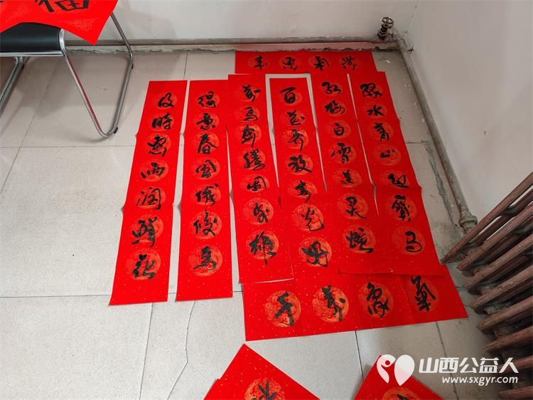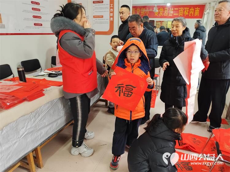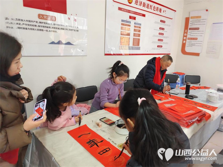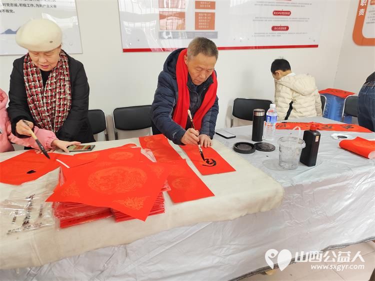 墨香迎新春笔暖菜园苑----太原市迎泽区南内环二社区菜园苑小区志愿者写春联活动举办书法家苏甲生挥毫书写双西小学三年五班周思源捐赠对联100付福字100个