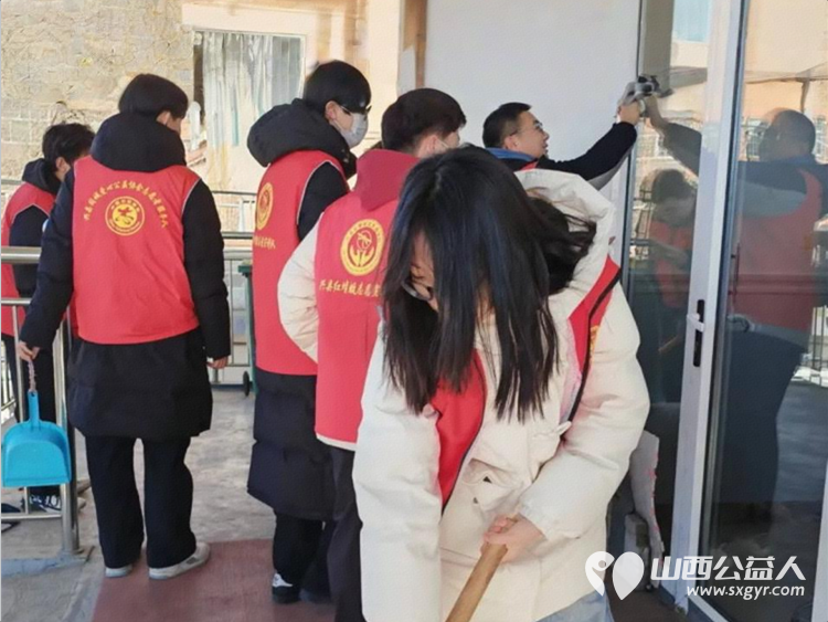 兴县同城爱心公益协会兴县红蜻蜓志愿宣讲队兴县大学生志愿服务总队联合组织的“温情冬日青春伴夕阳——兴县大学生寒假暖心行动”在寺塔梁康乐养老院里温情启幕