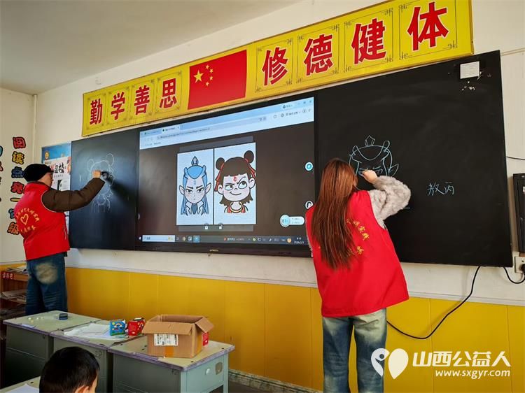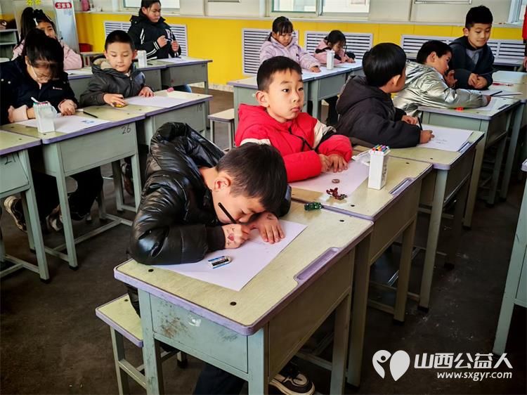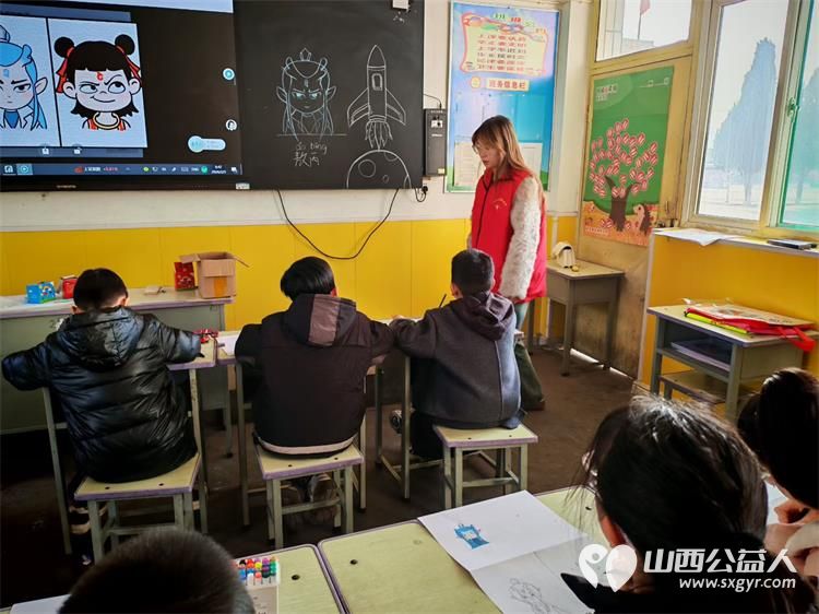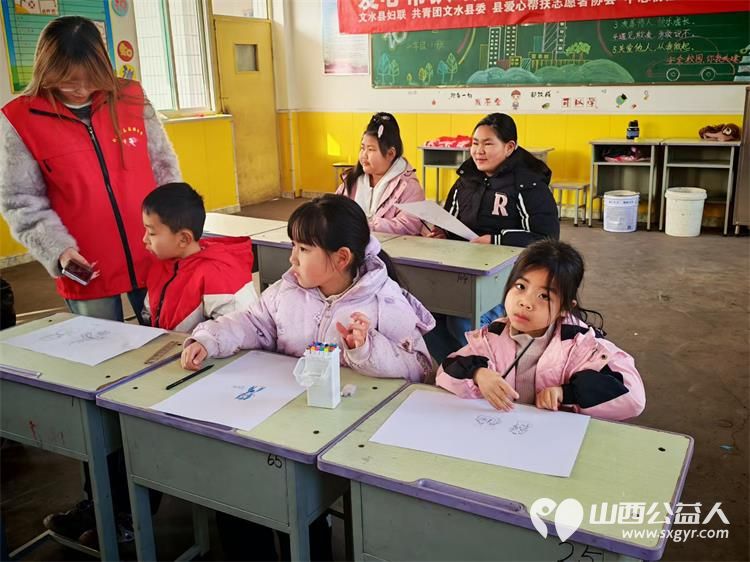 文水县爱心帮扶志愿者协会2月3日组织的返乡志愿者走进岳村学校继续开展公益画画课啦