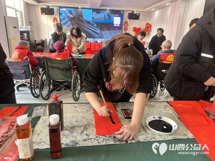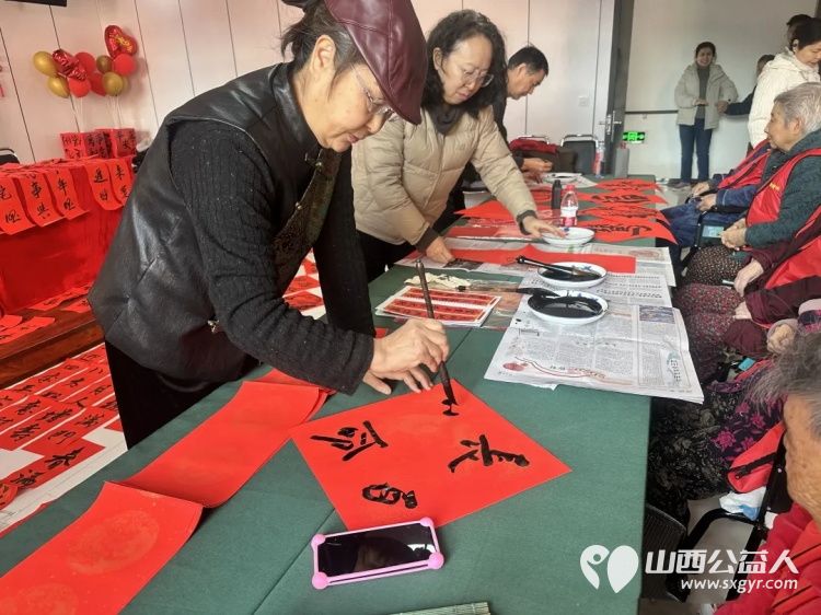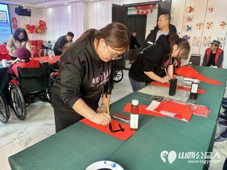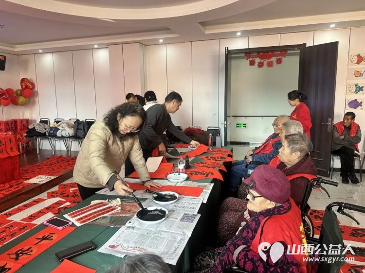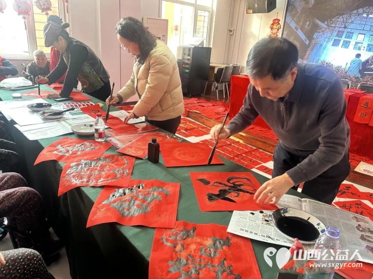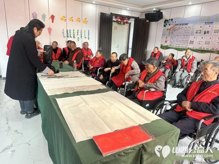 春联映夕阳笔墨送春归 太原市杏花岭区美术家协会书法家走进太原市杏花岭区比家美慈爱养护院开展迎新春·送祝福公益写对联活动