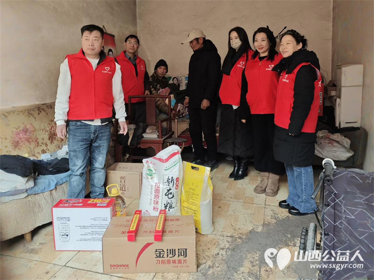 新春送温暖关爱伴前行 长治圆梦公益组织志愿者来到长子县西南呈村开展困难家庭慰问活动为残疾的老人和五保户捐赠米面油面片方便面棉衣和慰问金让温暖在寒冬中传递