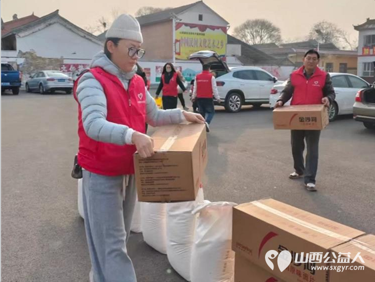 志愿者们分工协作,在室外整理搬运慰问物资。一箱箱金沙河挂面等生活必需品被仔细打包,为困难家庭送去切实的帮助。