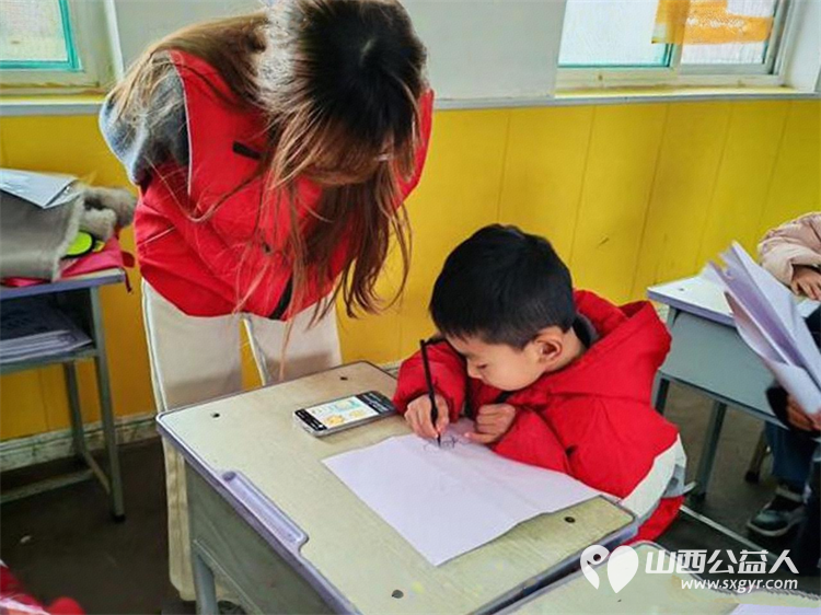 文水县爱心帮扶志愿者协会2月6日继续组织返乡志愿者走进岳村学校开展公益画画课