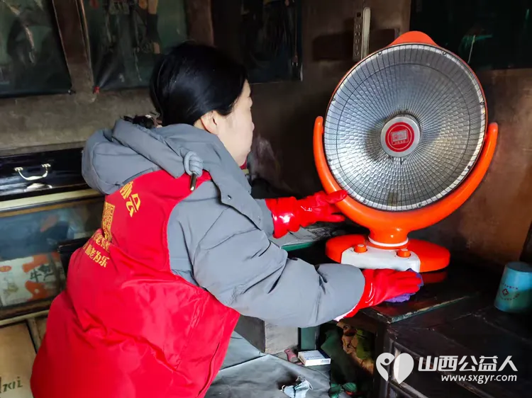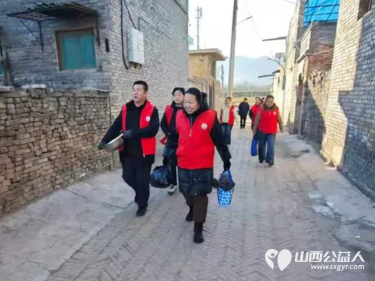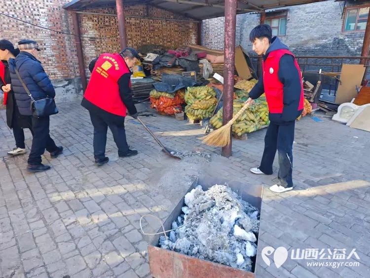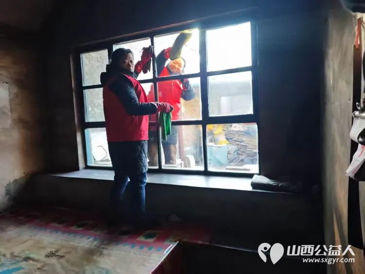 介休市敬老协会志愿者在绵山镇靳凌村入户82岁特困老人张林仁家为老人打扫室内外卫生做饭包饺子