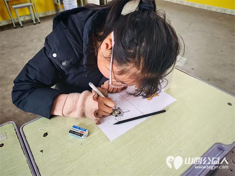 2月9日文水县爱心帮扶志愿者协会的返乡志愿者坚持走进岳村学校开展公益画画课