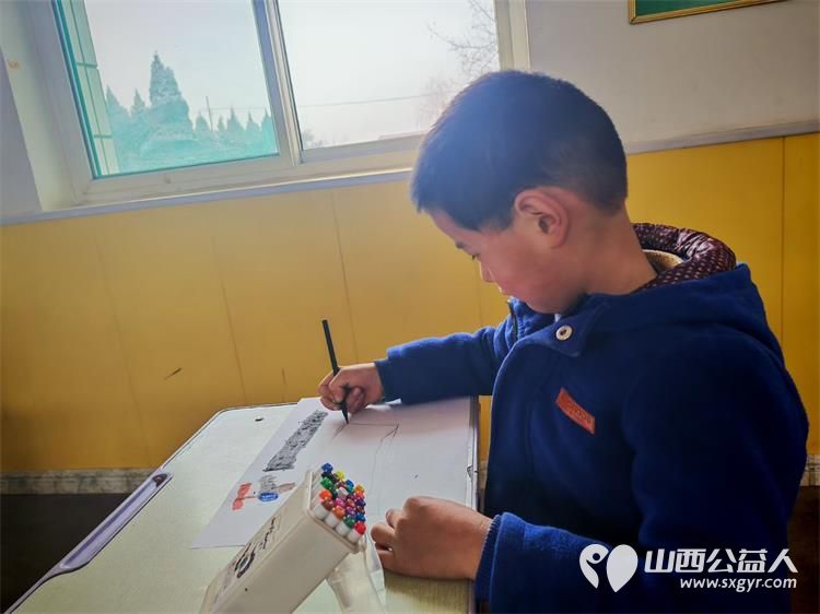 文水县爱心帮扶志愿者协会的返乡志愿者2月10日继续走进岳村学校开展公益画画课