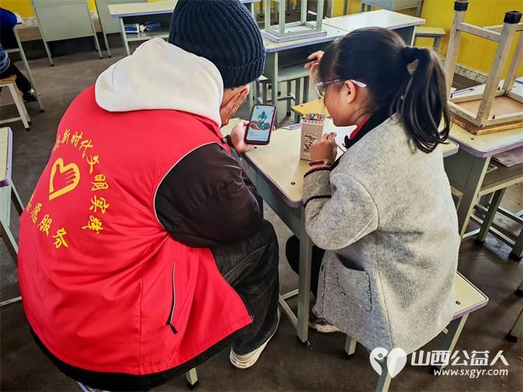 2月11日文水县爱心帮扶志愿者协会的大学生返乡志愿者继续走进岳村学校开展公益画画课用艺术陪伴孩子们度过欢乐时光