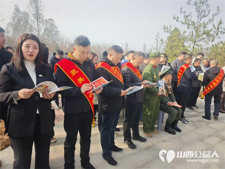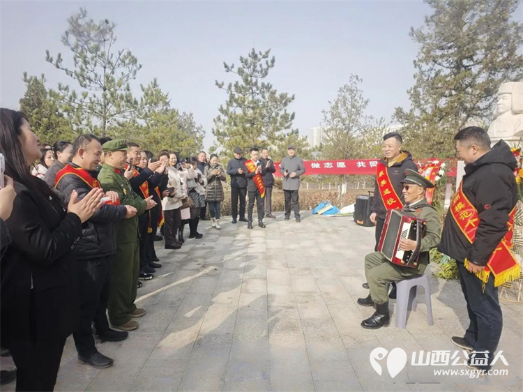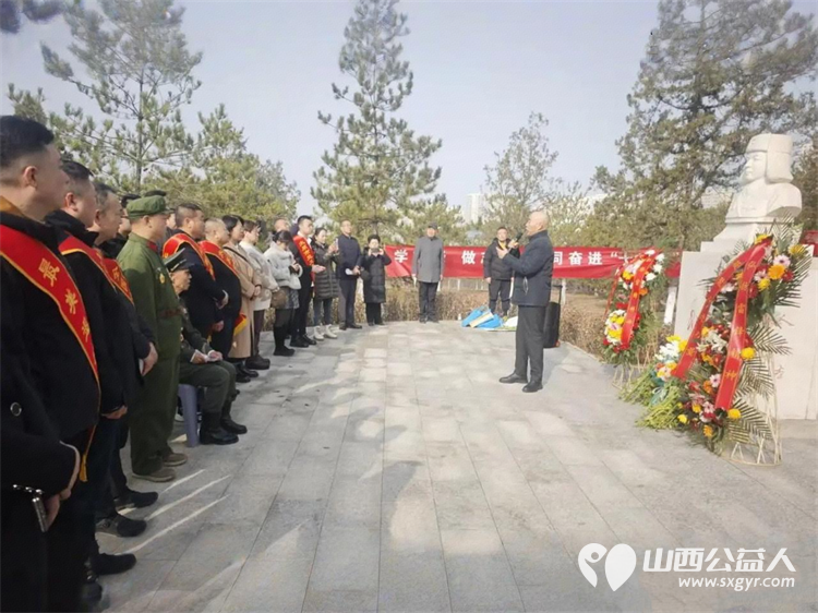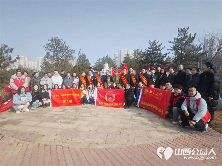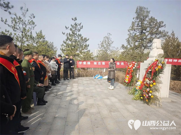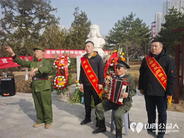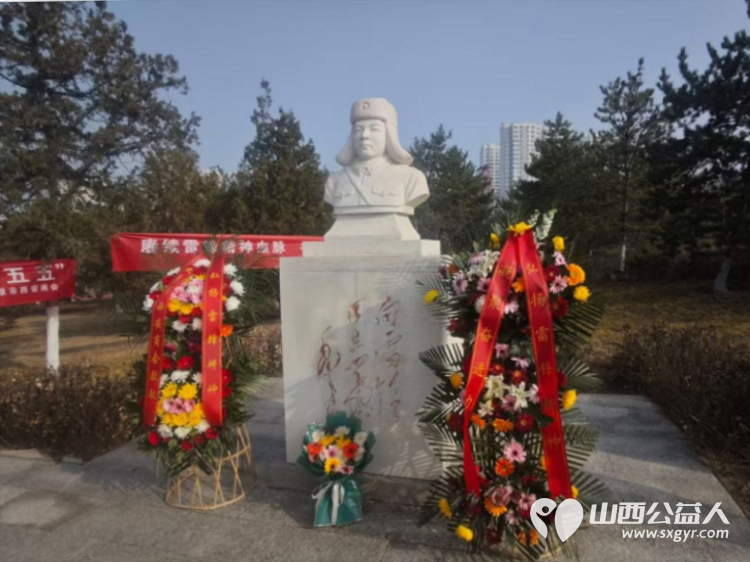 太原市神舟老班长爱国拥军志愿服务团联合各公益团队志愿者代表齐聚双塔公园雷锋塑像广场开展纪念雷锋同志题词63周年暨岗位学雷锋志愿服务主题活动