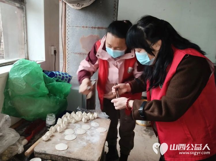 为老人做饭包饺子,并为老人送去爱心人士捐赠的苹果一袋(20斤装)。