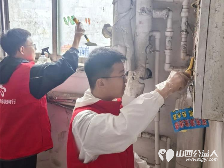 临汾市文明交通志愿者协会联合临汾一中2516班学生在志愿队长带队下走进商会社区清理小广告整治环境卫生