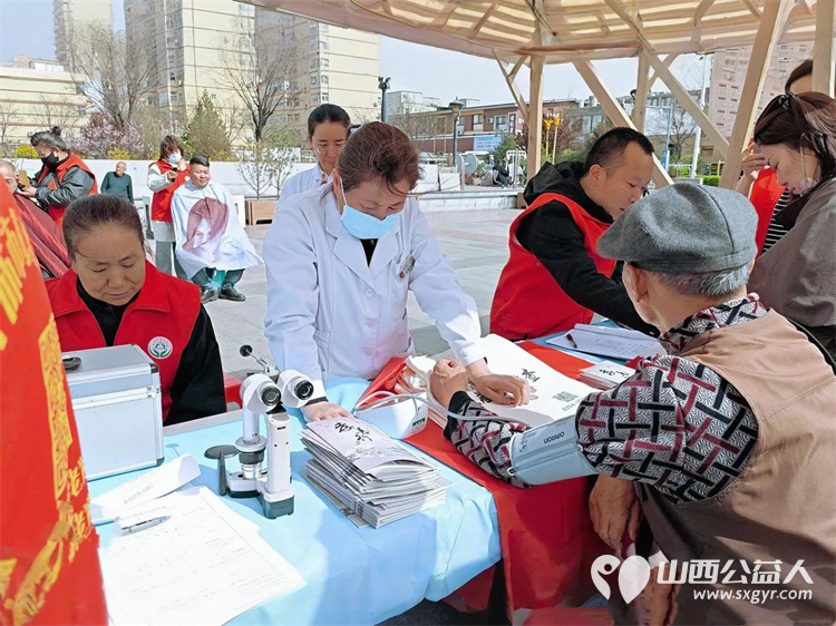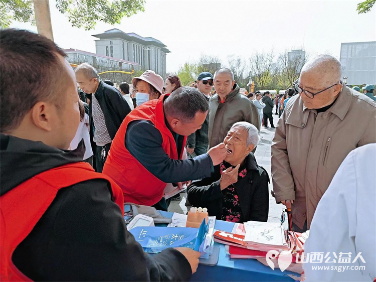 达美口腔、绵山眼科和晋中三院的医护人员为老人量血压、口腔检查、测视力、白内障检查、癌症筛查……他们以医者仁心赴公益之约,为老人们晚年生活送去一份温暖。