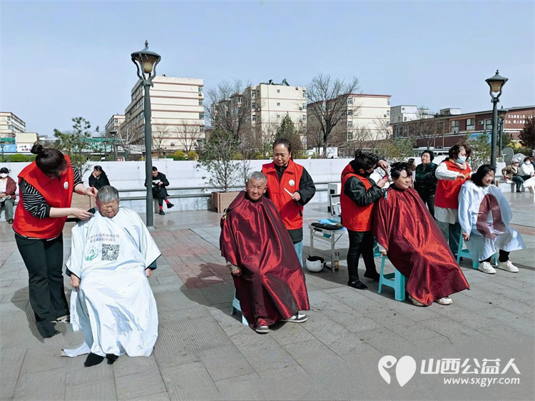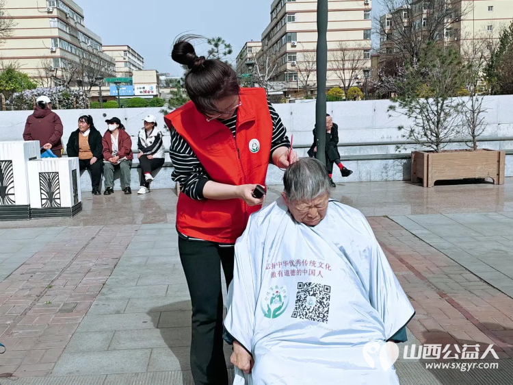 传承非遗品味文化----介休市敬老协会4月3日参加了非遗文化传承活动在后土庙为所有老人爱心理发义诊为老人们晚年生活送去一份温暖