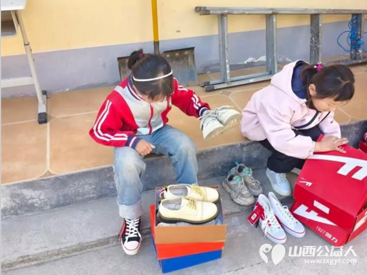 前期走访中,志愿者发现山区孩子的鞋子多有磨损,便策划了此次"为脚步助力"爱心捐赠。