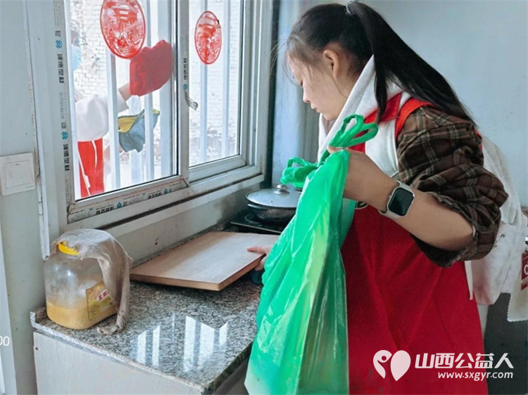介休市敬老协会志愿者走进张兰镇旧堡村入户82岁特困侯西林老人家为老人打扫室内外卫生做饭包饺子并送去爱心人士捐赠的苹果、梨一袋
