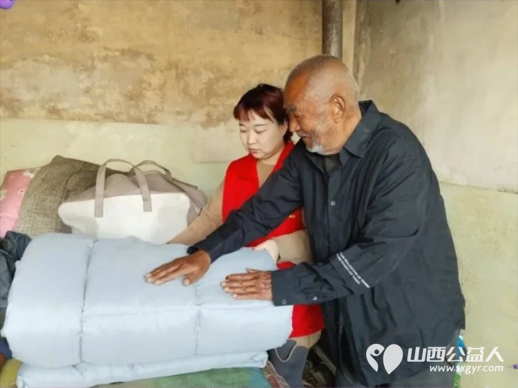 其余志愿者则动手铺好浙江爱心人士徐巍寄来的崭新棉被,为老人换上干净温暖的床品。得知老人因炭价偏高,许久未曾烧炕,大家又细心为他铺好电褥子,还耐心讲解各类食品的食用方法,帮老人试穿新衣新鞋,每一处细节都照料得细致入微,尽显贴心。