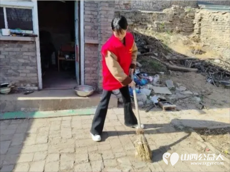 高中生志愿者贾舒媛主动拿起工具,清扫院落、整理屋内杂物,让屋子变得整洁清爽。