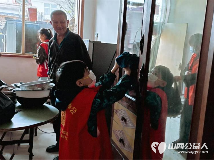 介休市敬老协会组织志愿者走进张兰镇穆家堡村入户81岁特困南清恭老人家为老人打扫室内外卫生做饭包饺子