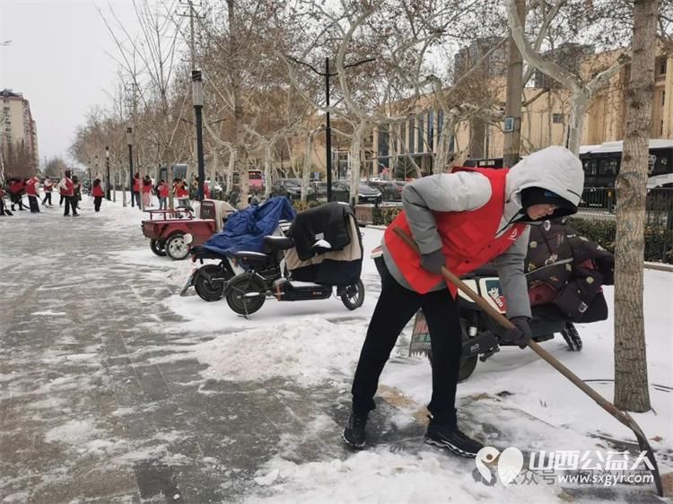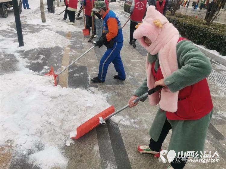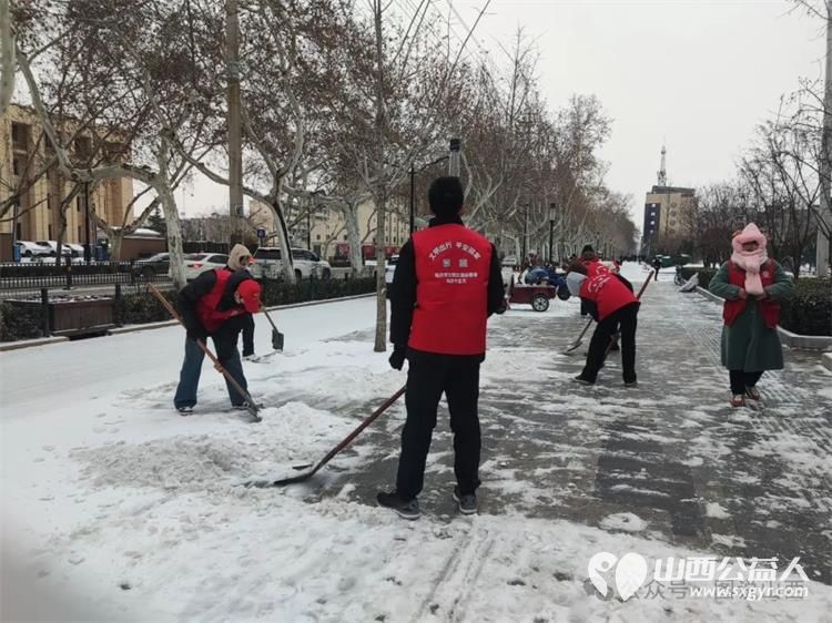 扫雪除冰保畅通寒风扫出暖心路 临汾市文明交通志愿者协会联合城管大队开展扫雪除冰志愿服务活动