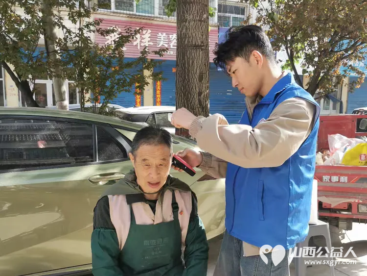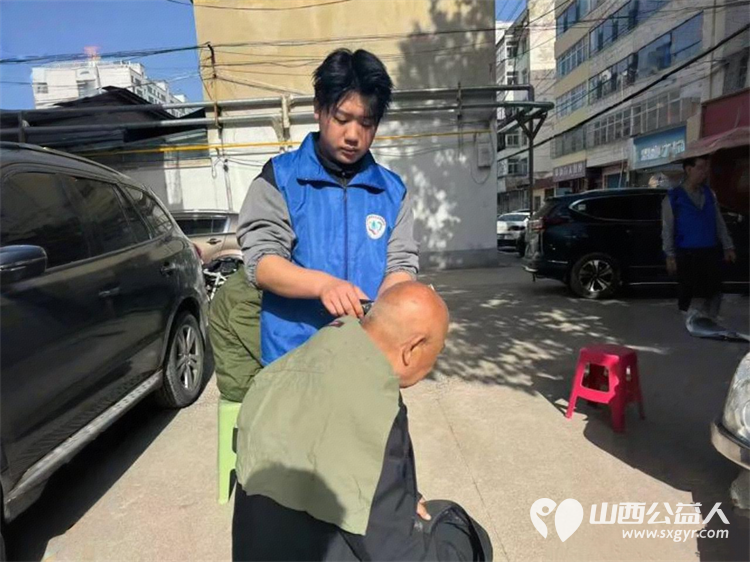 最美人间四月天 长治市小雨点公益志愿者协会利用周末星期六放弃休息放弃和家人团聚的好时光来到隆福饭店免费素食餐厅老人们中间为老人义务理发
