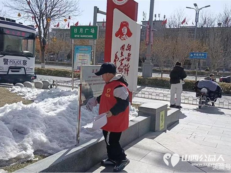 弘扬雷锋精神争做时代先锋 忻州红色公益团队志愿者们组织青少年走进日月广场清理日月广场环境卫生