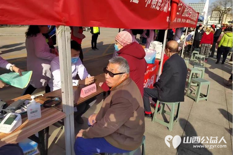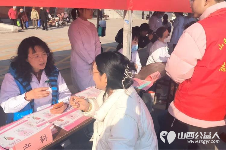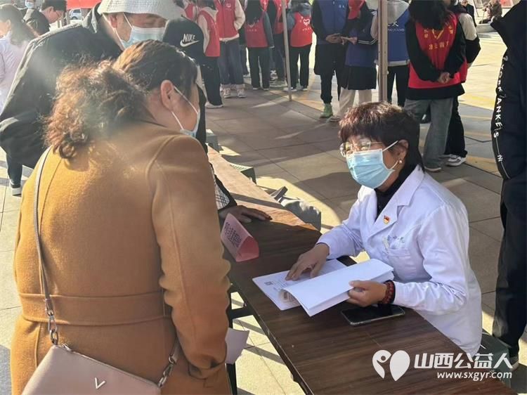 在学雷锋纪念日和三八国际妇女节来临之际,为倡导健康生活方式,增强自我保健意识,在市总工会、团市委、市文明办、市青联、团榆次区委、区青联的联合组织下,晋中市第一人民医院、晋中新青年高校志愿者联合服务中心,选派医护志愿者、青年委员、青年志愿者、大学生志愿者,在榆次区迎宾街“工人文化宫”北广场,联合开展了以“跟党奋进新征程.巾帼建功新时代”为主题的“学雷锋.庆三八”大型公益义诊志愿服务。