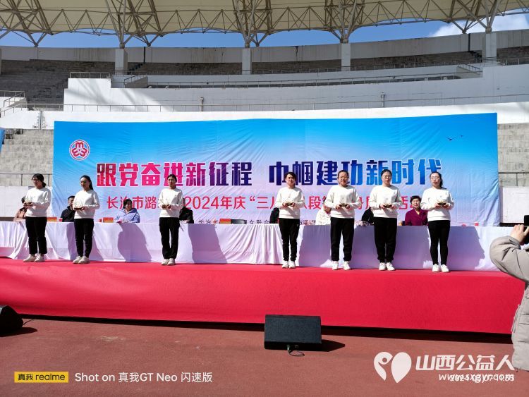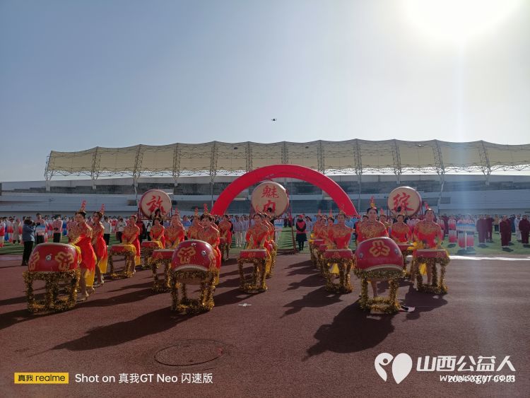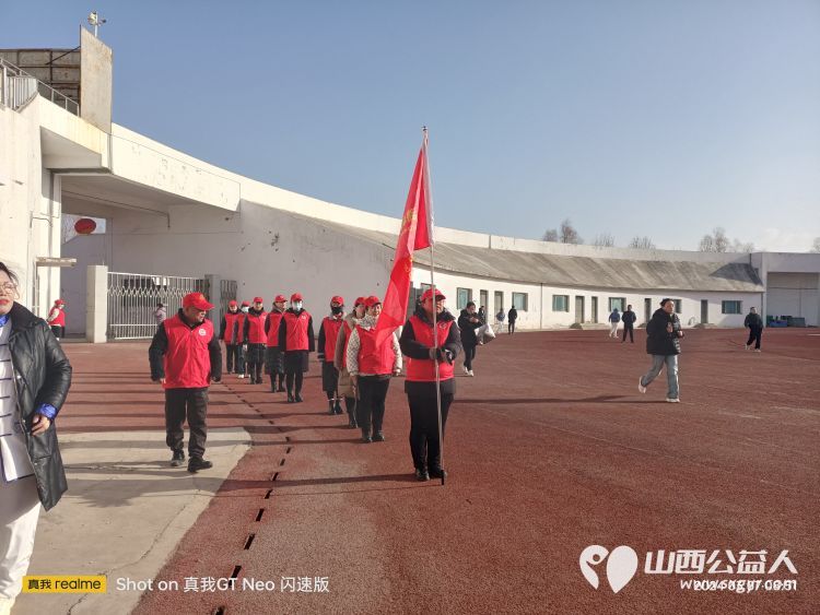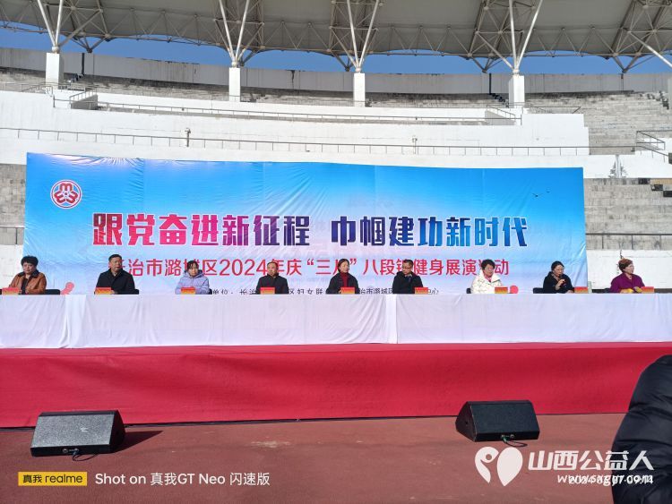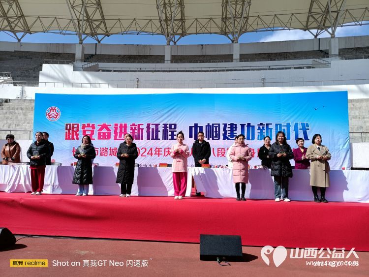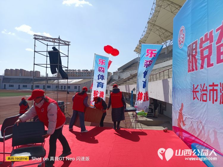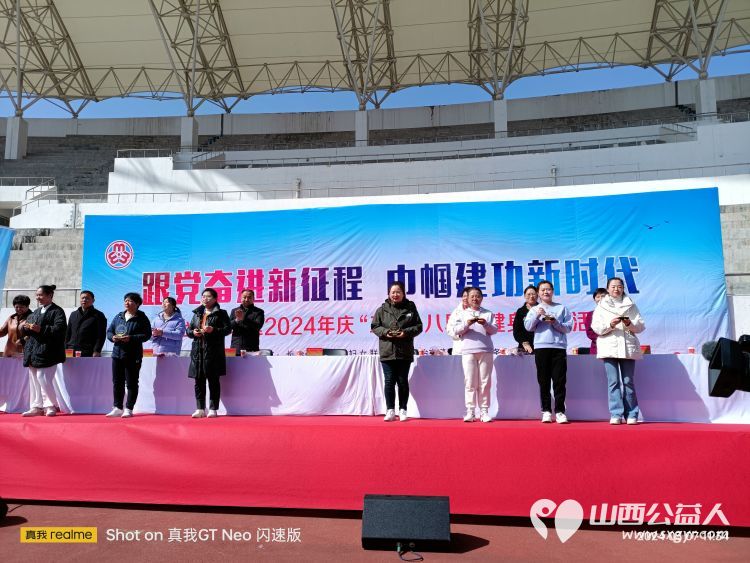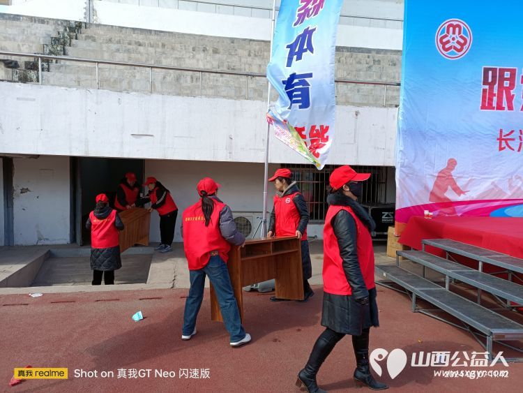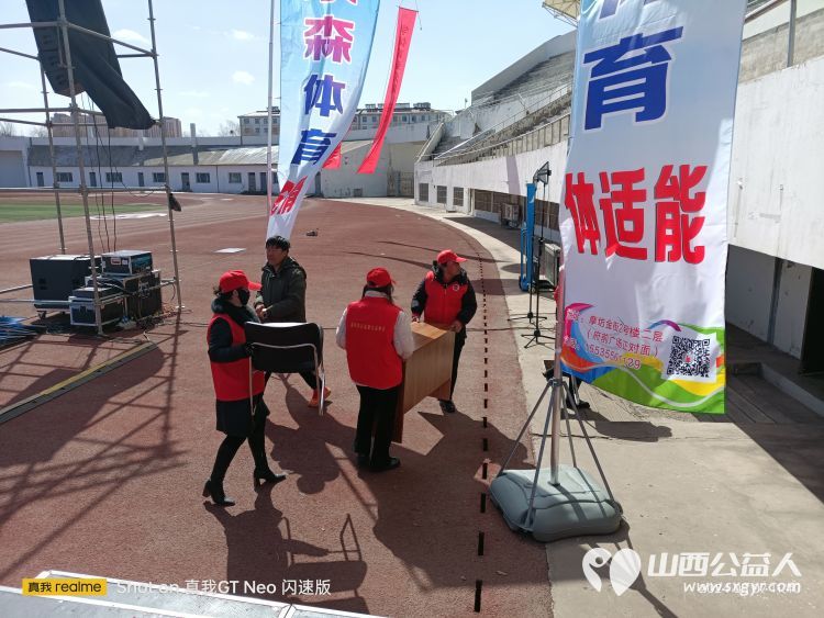 潞城区在体育场隆重开展庆祝“三八”八段锦健身展演活动正能量公益协会的志愿者们现场志愿服务